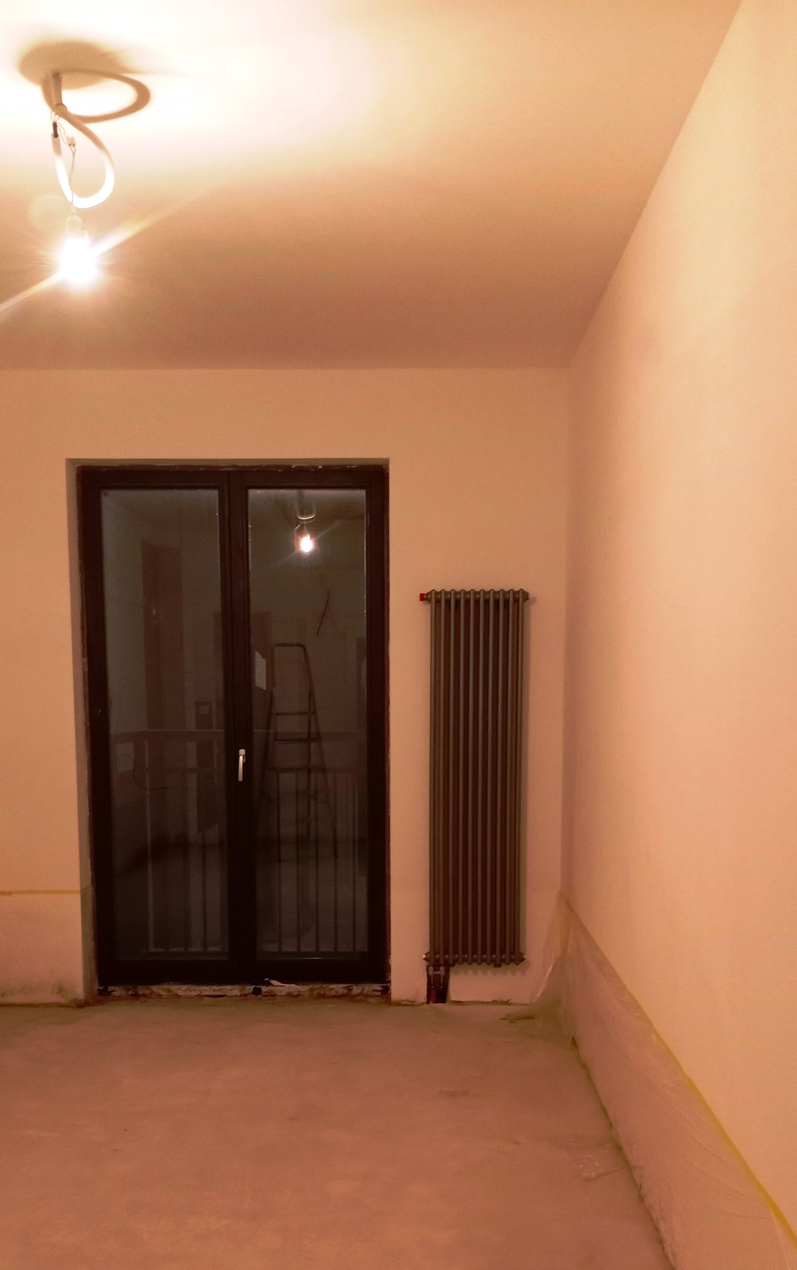 монтаж трубчатого радиатора на выходе в зимний сад.
