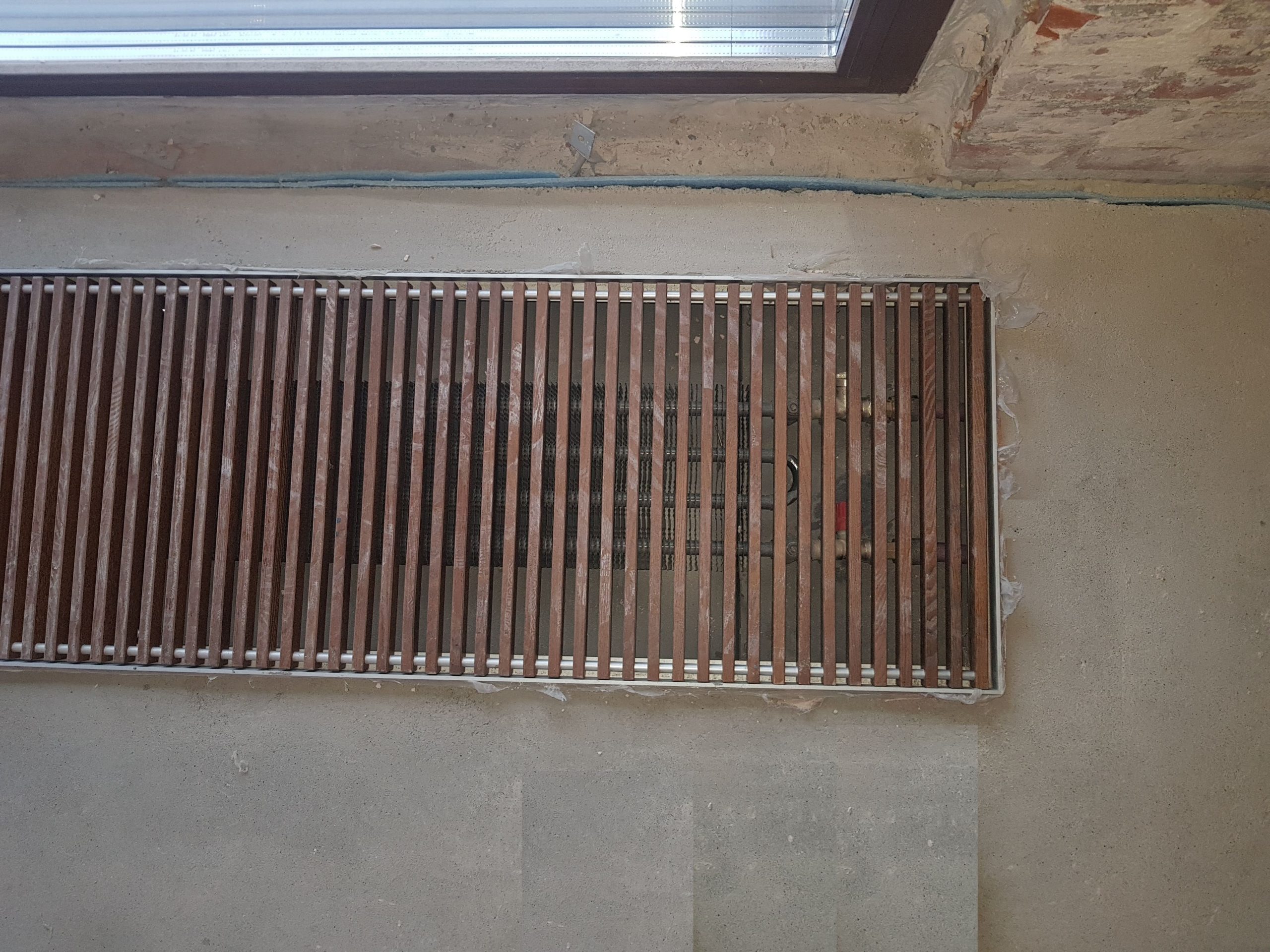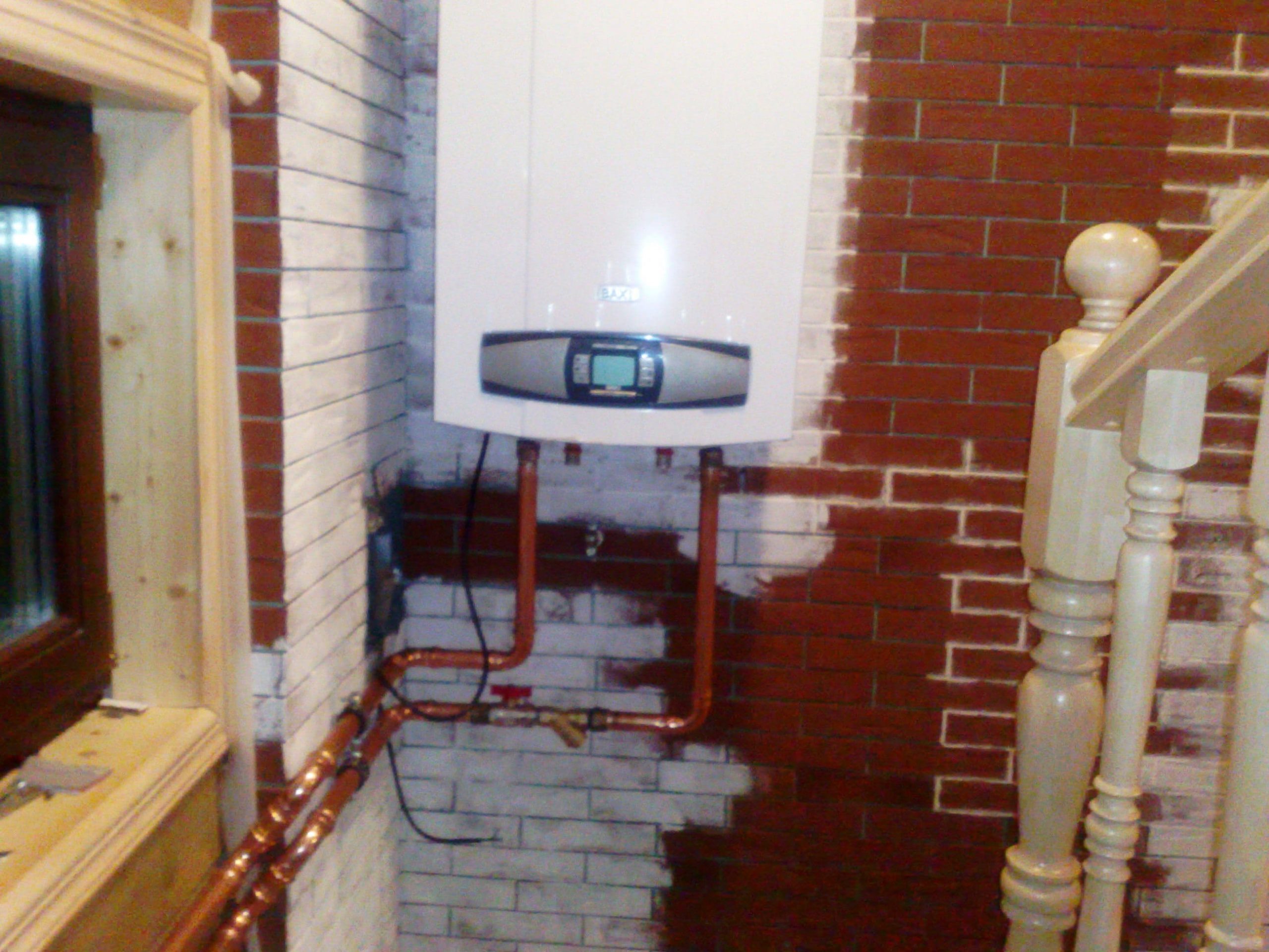Система отопления состоит из тёплого пола, а балкон и панорамное остекление дополнительно обогревают внутрипольные конвекторы Jaga (Бельгия) с деревянными решётками Мербау натуральный. Для отопления и горячего водоснабжения дома используется настенный газовый котёл BAXI (Италия) модель Luna-3 Comfort мощностью 25 кВт. Обвязка котла выполнена медными трубами.